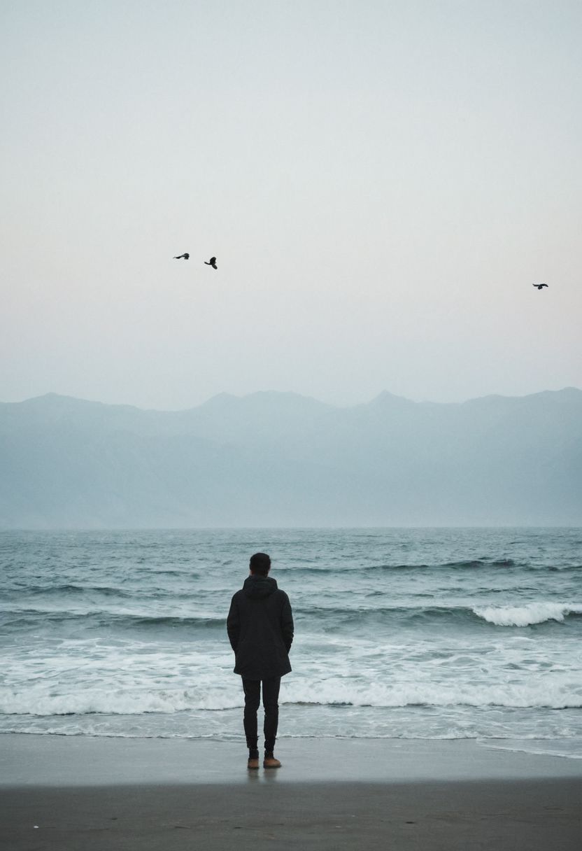 mountains,birds,vast ocean,waves, high contrasts look,, (subtle gradient backdrop:1.1), (tranquil yet evocative:1.2), (conceptual portraiture:1.3), (play on perception:1.2), Canon EOS 5D Mark III, 1/160s, f/8, ISO 100, (surreal calm:1.1), (visual metaphor:1.3)
