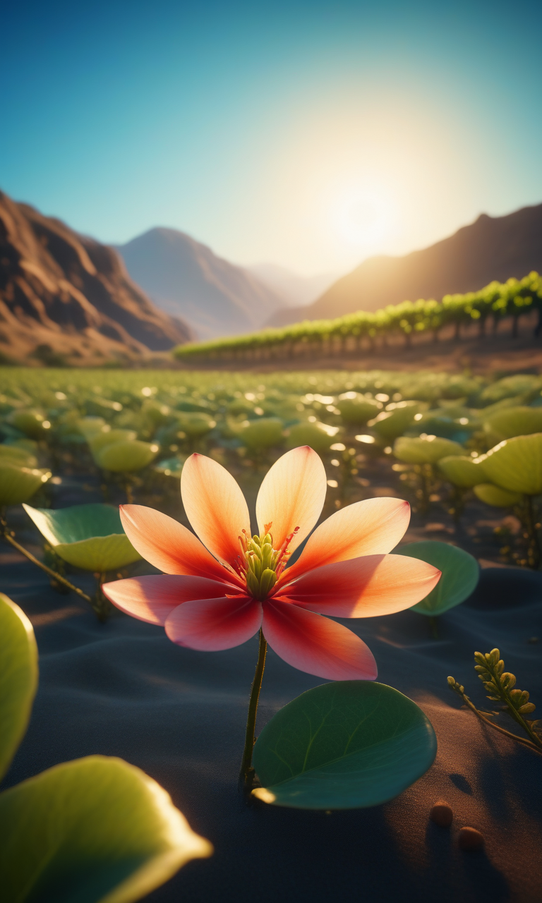 cinematic film still Subnautica mixed with Metro Exodus, landscape, Shimmering stars, Sapphire blue lagoons, Lush vineyard, Plains, Retro Art, Ceramics, Cross-Processing Photography, crisp, detailed, luminous, clarity, balanced, 4K-resolution, focused high-resolution, contrast, rich-colors,, rural, fearful, defiant, cool, obsequious, xenophobic, lonely, bark, extra-small, alive, official art, unity 8k wallpaper, ultra detailed, beautiful and aesthetic, masterpiece, best quality, A stunningly vibrant close-up of a colorful flower petal. Against this serene backdrop, a tiny, iridescent green insect about to perche delicately on the edge of the petal. . shallow depth of field, vignette, highly detailed, high budget, bokeh, cinemascope, moody, epic, gorgeous, film grain, grainy