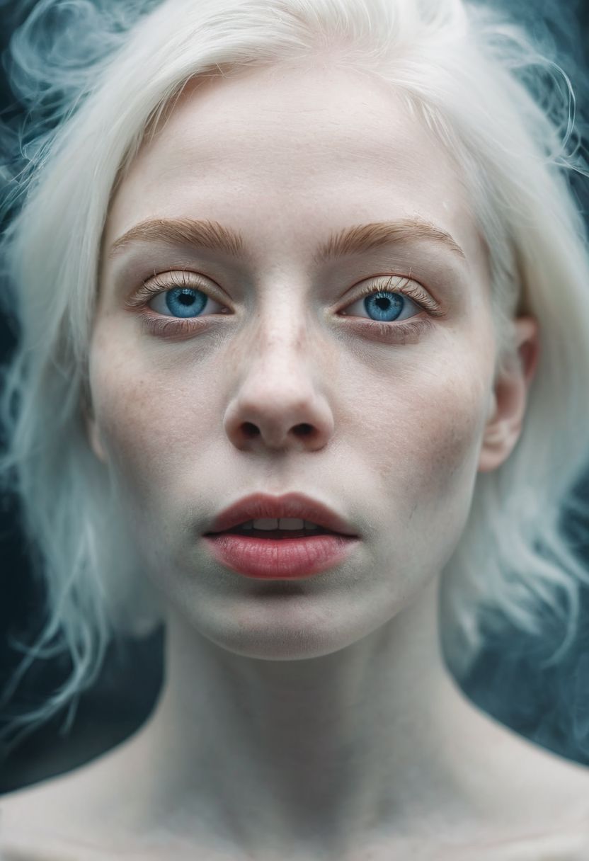 Persian Girl,atmosphere, mysterious glow, aesthetic of postcolonial art and impressionism:0.1), artistic magnum opus with polished details, (moonstone white and teal colors:0.1), <lora:MJ52:0.3> <lora:xl_more_art-full_v1:0.3><lora:MJ52:0.5>>contemplative, smirk, piercing blue eyes, extremely long hair, sleek hair, portrait, dynamic pose, (blue turtleneck), 100mm f/2.8 macro lens, , full body, battle stancevibrant, (Cinematic Photography by David Bailey and Adeline Boutain:1.2), award-winning photography, aesthetic and beauty, impeccable details, uniform focus, f/1.4, breakthrough, multiple exposure photography, (center composition, symmetry composition:0.1), (smoke gray and multi-color colors:0.1) <lora:MJ52:0.8> <lora:- SDXL - vanta-black_contrast_V3.0:0.5>black Show less ethereal, (albino:1.3) (nymph:1.3), (albinism:1.4), Lengthened Rectangular Face with Noticeable Jaw and Cheekbones, Clean, Straight Eyebrows, Wide-Set Close-Set Eyes, Majestic Aquiline Nose, Full Lips, windswept (Fine) (stylish short white hair:1.3), (looking at viewer),(Ashen skin:1.3), (flawless skin:1.3), (shiny skin), diaphanous white dress, high neckline on dress, (foggy:1.2), (bathed in thick fog:1.4), (half-obscured:1.1), (Close up:1.2), Dutch Angle), (dynamic composition:1.2), (shallow depth of field:1.2), bright lighting vibrant, in the style of (Ansel Adams:1.3) (Rule of thirds:1.1) Show less