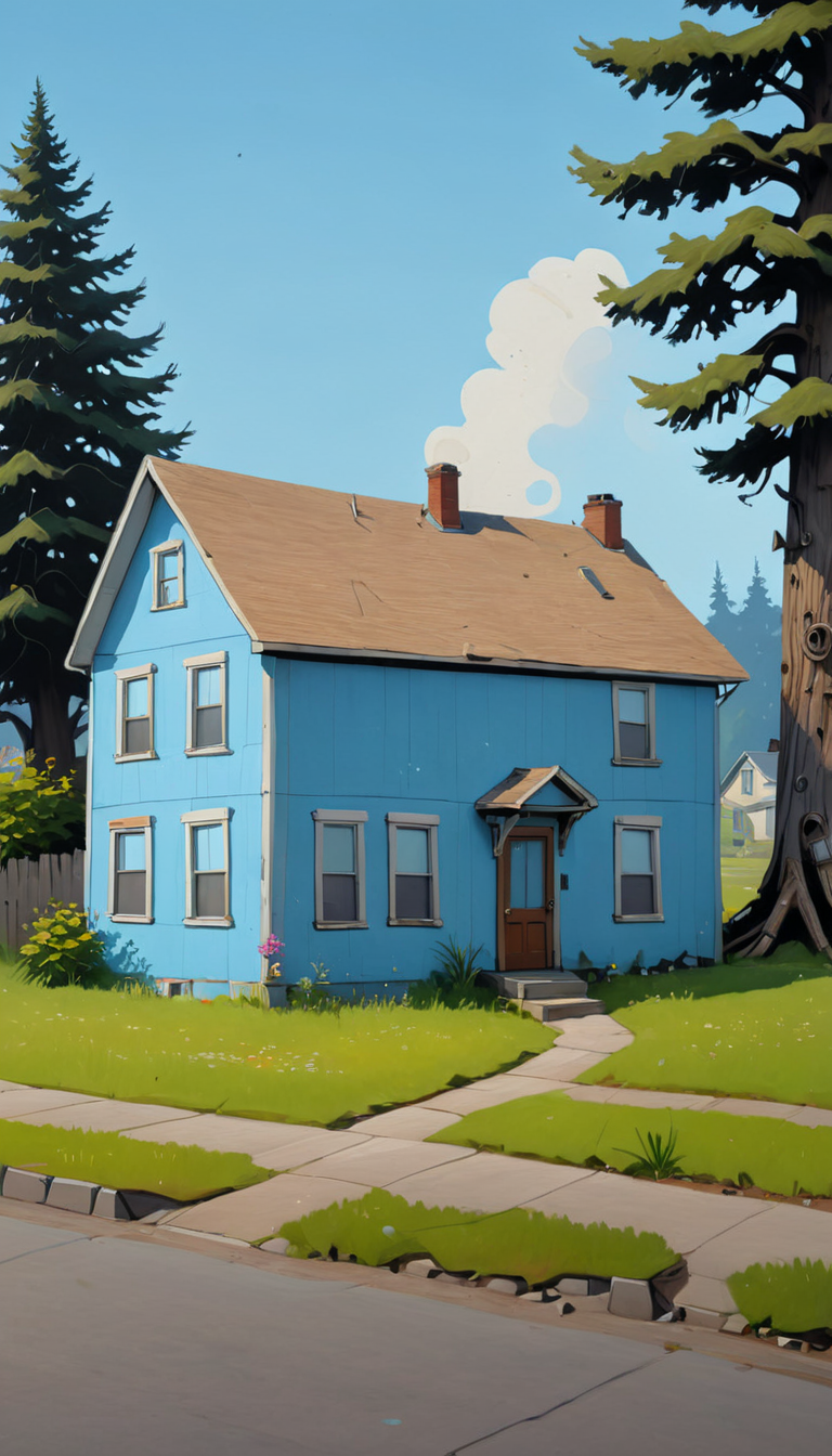 <lora:Everly_Heights_Backgrounds_New_Settings:1> a rundown house on the outskirts of Everly Heights, a painting, background art.