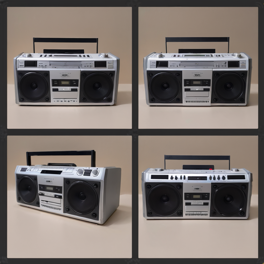 <lora:Everly_Heights_Prop_Generator:.7> a 1990s boom box stereo (front, back, side:1.2)