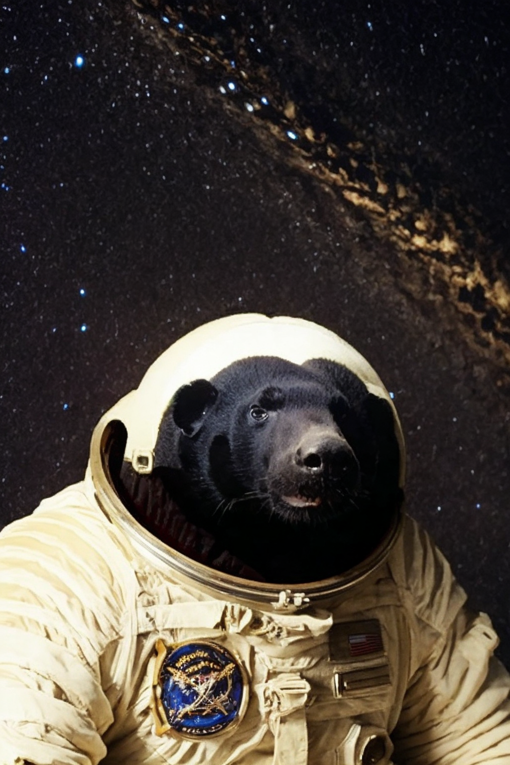 Astronaut with a Honeybadger head wearing a helmet <lora:rubbishmonkey:0.9>, <lora:HoneyBadger:0.7>