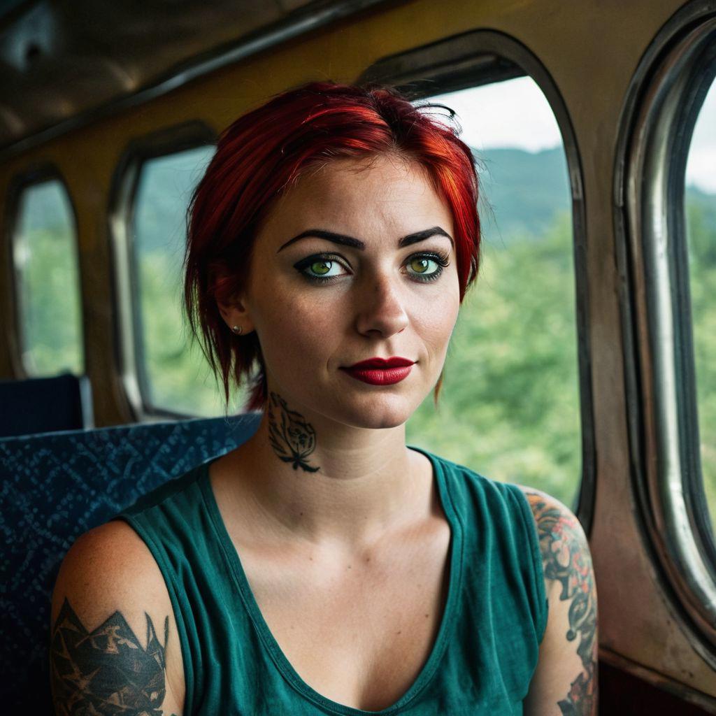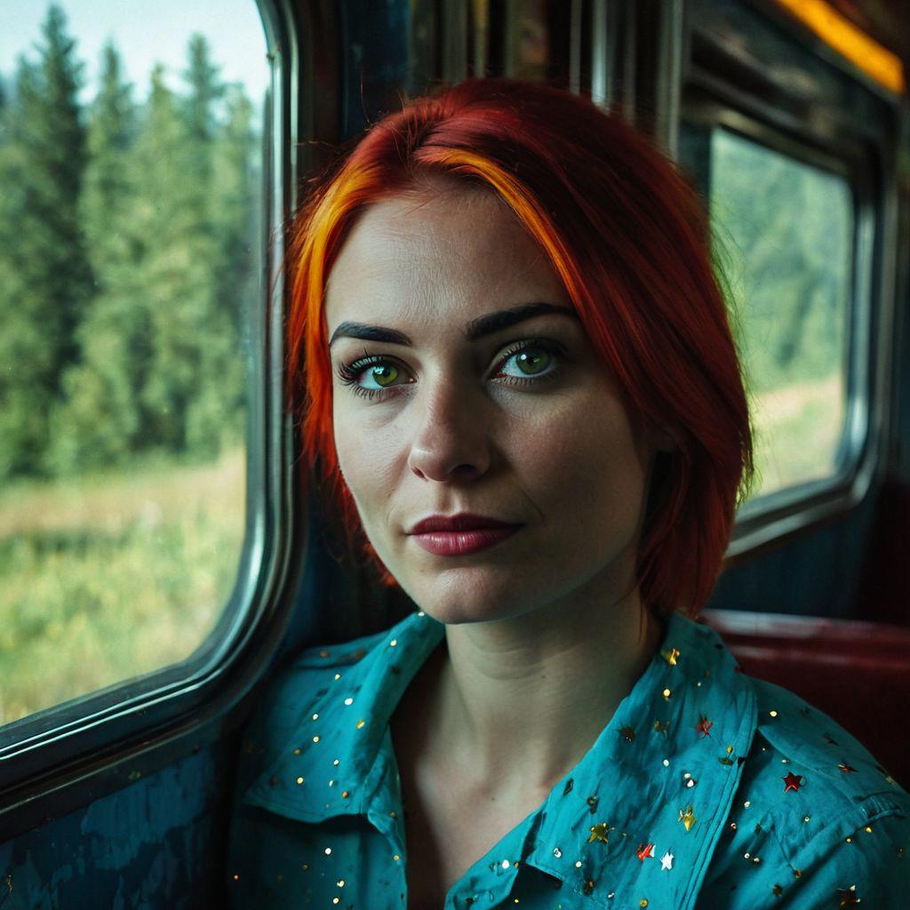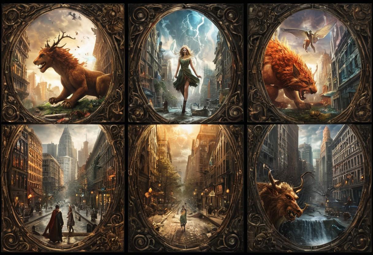 multi-exposure photo by Sci-fi style and Victorian style,beautiful woman on street walk, amazing breast and legs in mini-frock, wide smile, brown eyes focus, short hair, rainbow hair, dark makeup, detailed photo, soft light, stunning extensive details, natural ambient lighting, cinematic photography, stunning facial texture detail, natural ambient lighting