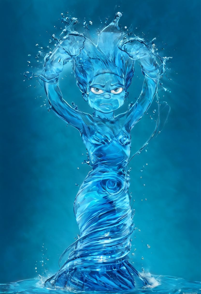 amazing photorealistic female water elemental, bart simpson made of water, bart simpson, transparent, blue, tribal water spirit, water whirl background, hyper detailed, realistic, award winning, best quality, perfect photo