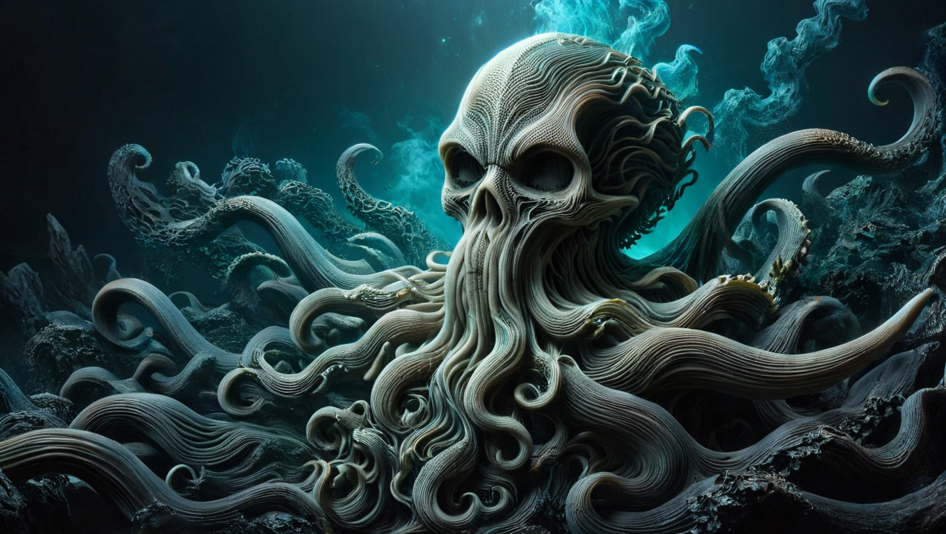 <lora:ral-3dwvz-sdxl:1.2> ral-3dwvz, (((Cthulhu))), tentacles, swamp <lora:ral-dissolve-sdxl:0.6> ral-dissolve, thick black smoke, <lora:epoxy_skull-sdxl:0.3> epoxy_skull, photo-realistic, 4k, laser prism spectrum gradient background lighting,