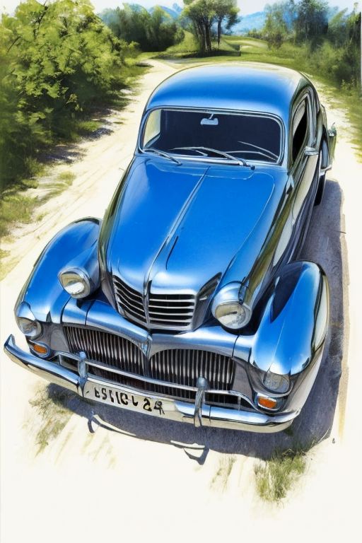 Masterpiece Illustration retro Car, Bottom View, Outdoors, 8k, Ultra Detailed, Soft Lighting, Ultra Detailed, Wtrcolor Style