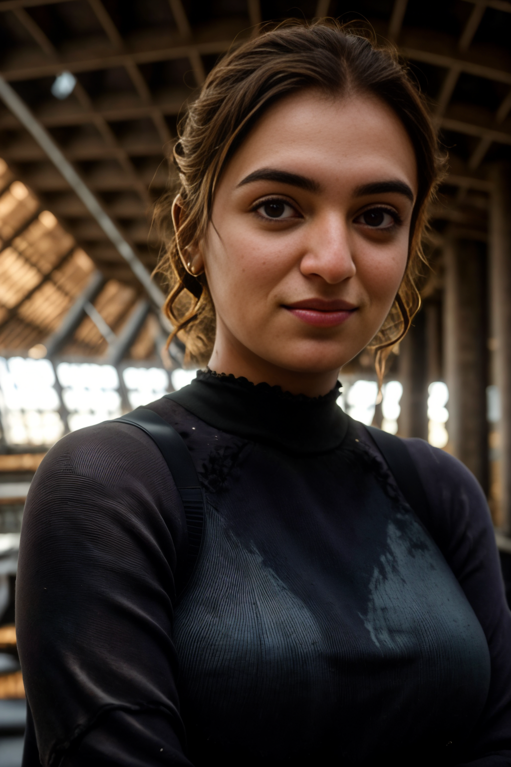 NazriyaNazim, (art by Thom Mayne:1.1) , portrait,close up of a Secret thick Peasant Woman, Charred thick and lush hairstyle, inside of The Sydney Opera House, Sephardic forest, at Golden hour, Cel shading, <lora:NazriyaNazimSD1.5:1>