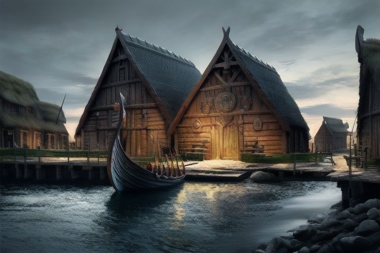 RAW photo, (masterpiece:1.3), subsurface scattering, heavy shadow, (high quality:1.4), (intricate, high detail:1.2), professional photography, HDR, High Dynamic Range, realistic, ultra realistic, photorealistic, high resolution, film photography, ambient lighting, atmospheric effects, <lora:detail_slider_v4:2>, OverallDetail, a medieval viking town, a harbour, a viking ship, ViVi, <lora:VikingVillage-10:1>, epiCPhoto