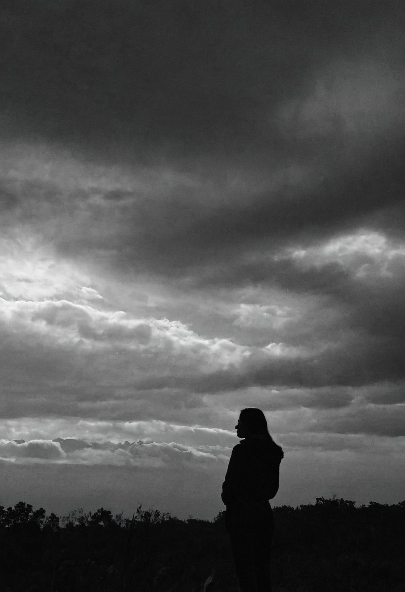 I'm standing here Watching the clouds float by Wondering why the pain never deserted me The sadness, sorrow, bewilderness that never left (dark atmosphere)(silhouette)