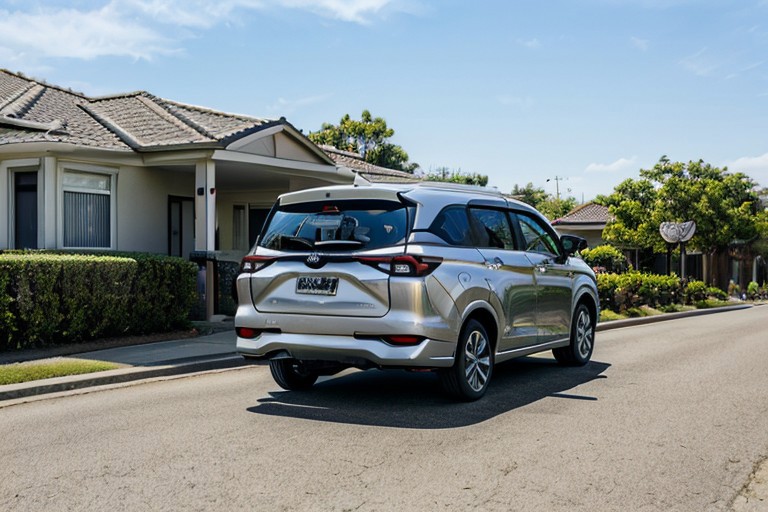 high resolution, best quality, Car, Daihatsu Xenia, Suburban neighborhood, kids biking, afternoon,