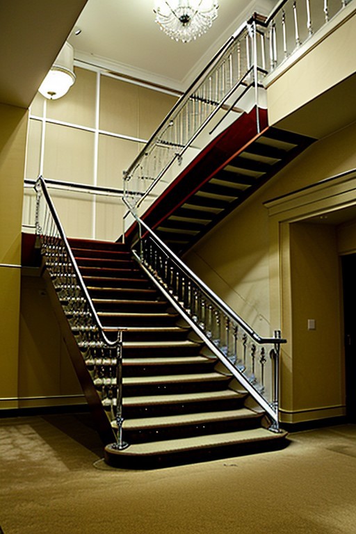 corner building in new york, intercontinental hotel, colonial style design, staircase at the entrance with red carpet and chrome metal handrail