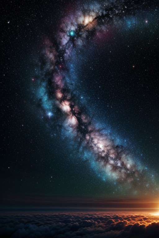 masterpiece, best quality, absurdres, illustration, photorealistic, colorful gas clouds, stars, distant galaxies, swirling patterns, glowing light, dark void