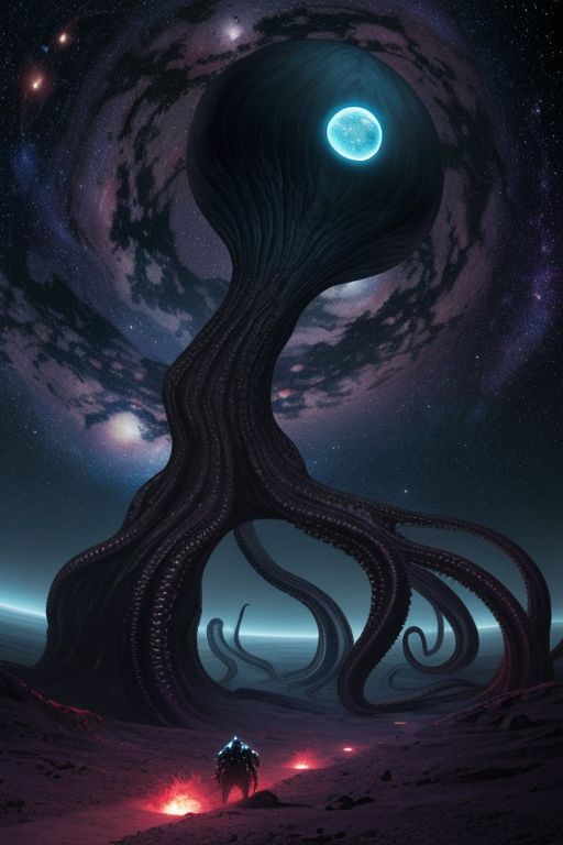 masterpiece, best quality, absurdres, Explore the depths of space, where eldritch beings lurk. Tentacled monstrosities drift near distant planets, their presence both awe-inspiring and terrifying.