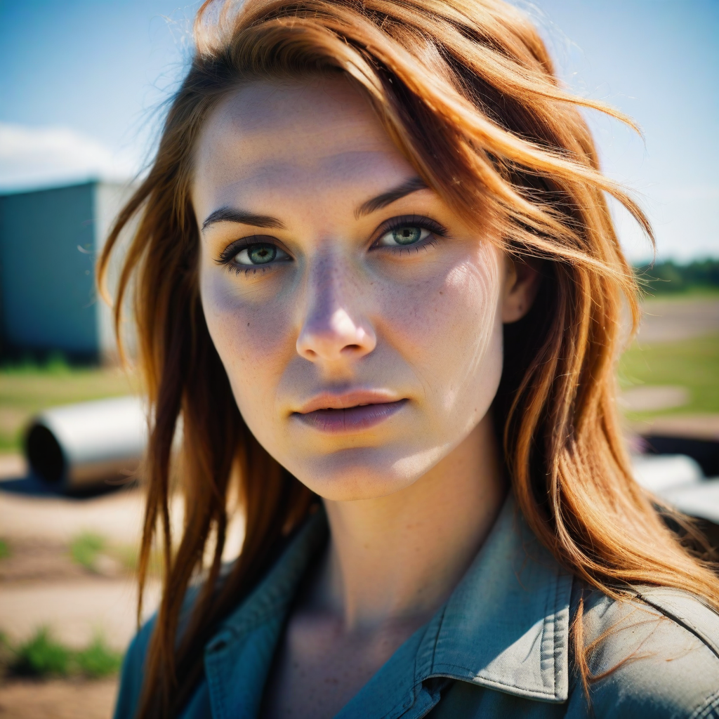 photograph, Broken Foul Industrial (Female Interior designer:1.2) , her hair is Honey, fauna, Clear skies, Realistic, dynamic, Cinestill 50, F/14, Saturated, highly detailed face, matte skin
