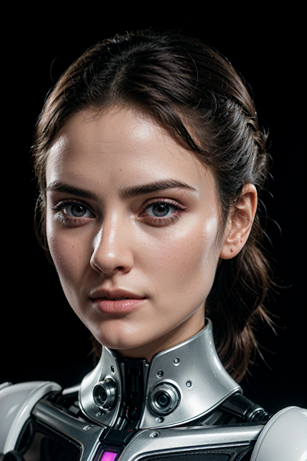 Ultra detailed complex 3D rendering of a gorgeous porcelain profile Perfect Android Face Robotic Body Parts, ciborgue loira, olhos azuls claros, robotic parts, 150mm, Beautiful soft studio light, Anel luminoso, detalhes vibrantes, cyberpunk roupa cybernetica. de frente Inteligencia Artificial, <lora:add_detail:0.5>