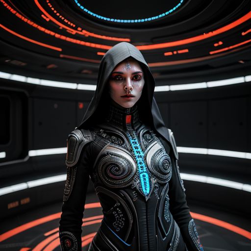 Create a high-quality (DCI 4K) 3d concept (RAW photo:1.6), Fashionable portrait of androgynous alien looking witch wearing veil, glowing eyes, futuristic design, minimal details, givenchy, photoreal, 200mm, hd, f/ 2.0, highly detailed, surreal , gorgeous, in the style of red, orange and blue, (intricate details, hyperdetailed:1.15) (skin texture:1.2), (realistic:1.4), (fractal:1.2), sharp focus, neon, detailed sci-fi interior background,, <lora:add-detail-xl:1>