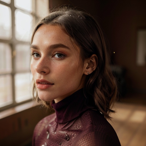 <lora:kennedy922_sd15_512_128_64_v1:1> 1girl solo looking at viewer wearing a turtleneck sweater epiCRealism