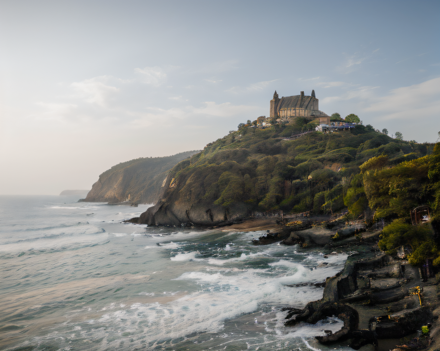 breathtaking A majestic castle perched on a cliffside, overlooking a vast ocean at sunset, with dragons flying in the sky Enhanced details,extremely detailed,very realistic,photograph,<lora:nature:0.7>,nature,scenery,<lora:naturepron_nolabels:0.7>, . award-winning, professional, highly detailed