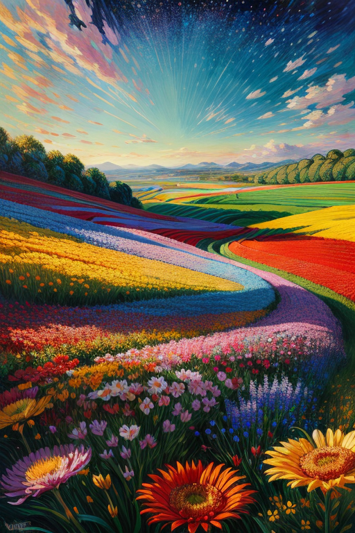 Acrylic painting, an exuberant burst of colorful flowers in full bloom, swaying in the gentle breeze of a vibrant spring meadow, extremely detailed, ultra-realistic, in the style of botanical illustration, expressionism, and modern art, with inspirations from the works of Georgia O'Keeffe, Vincent van Gogh, and Claude Monet <lora:add_saturation:1> <lora:add_detail:1> <lora:add_sharpness:1>