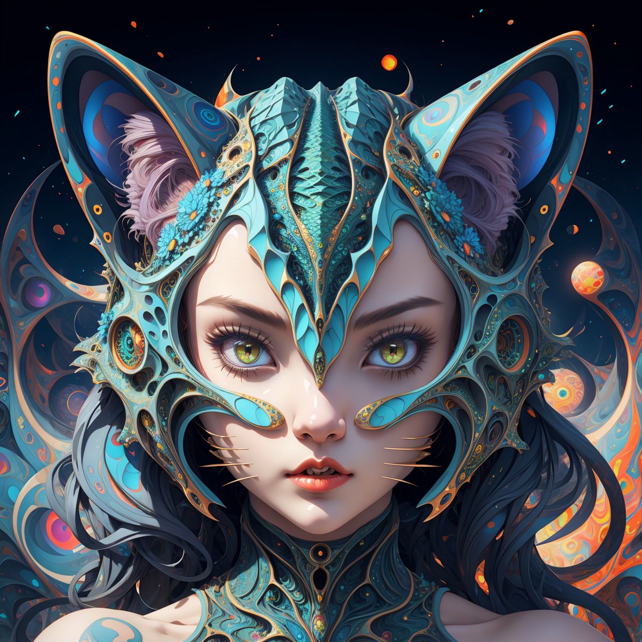 cat girl, tessellated, topographic style, psychedelic, highly detailed, sharp focus, fractal, <lora:butterfly:0.6>, <lora:t3xtn:0.3>