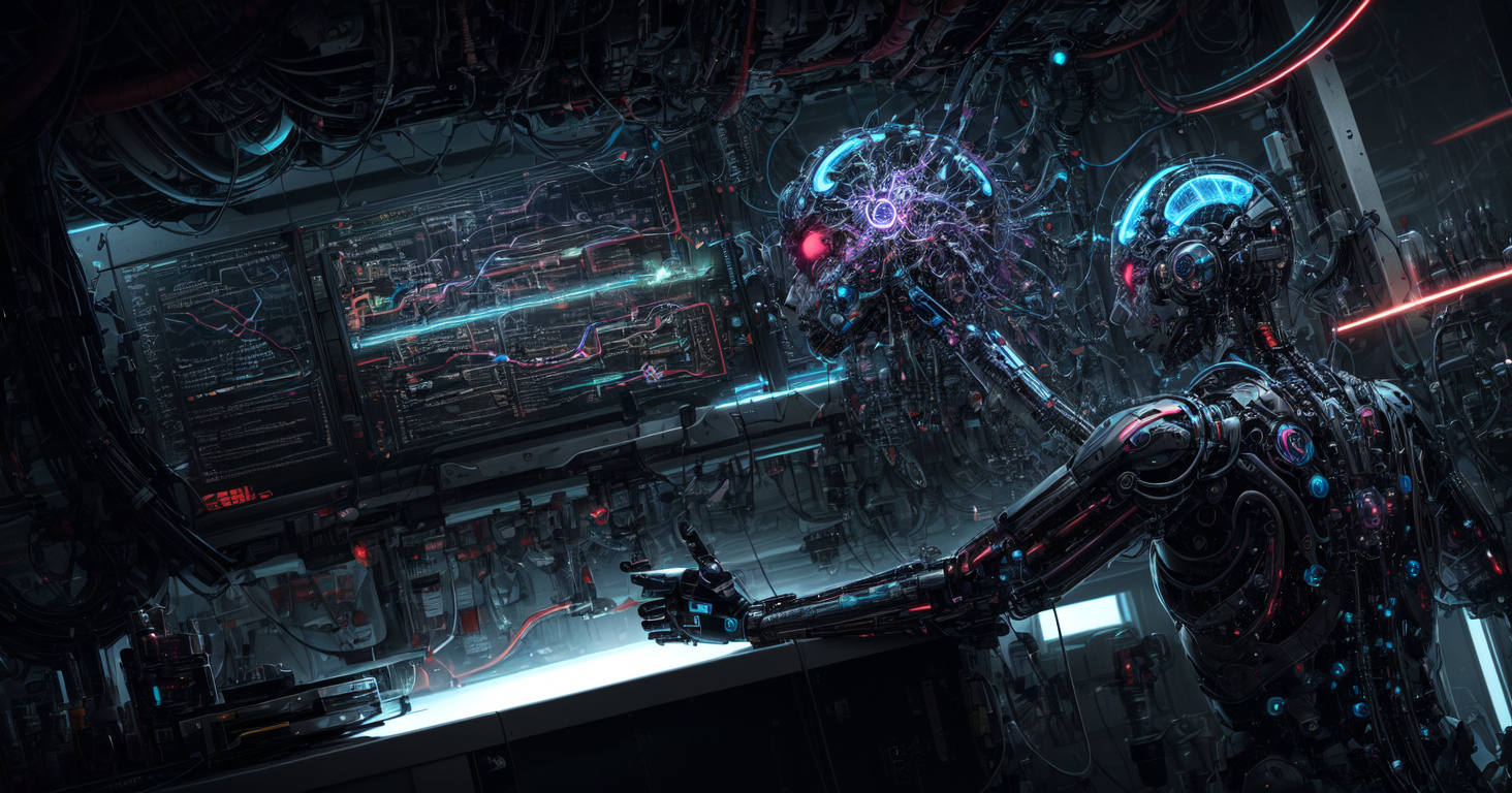Photorealistic Digital Art, Cybernetic Augmentation, Exploring Human-Machine Integration, Intricate Details of Neural Connections and Synthetic Enhancements, Futuristic Laboratory Setting, Technological Color Palette, Dynamic Composition with Data Streams, Inspired by the Work of Scott Robertson, <lora:add_detail:1>