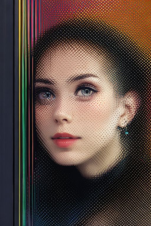 windows,reflection, glass, looking at viewer, upper body, lips,((polka dot),halftone, halftone background), multicolored background, colorful, too many, (car), abstract, rainbow order,realistic, <lora:polka dot:0.95>