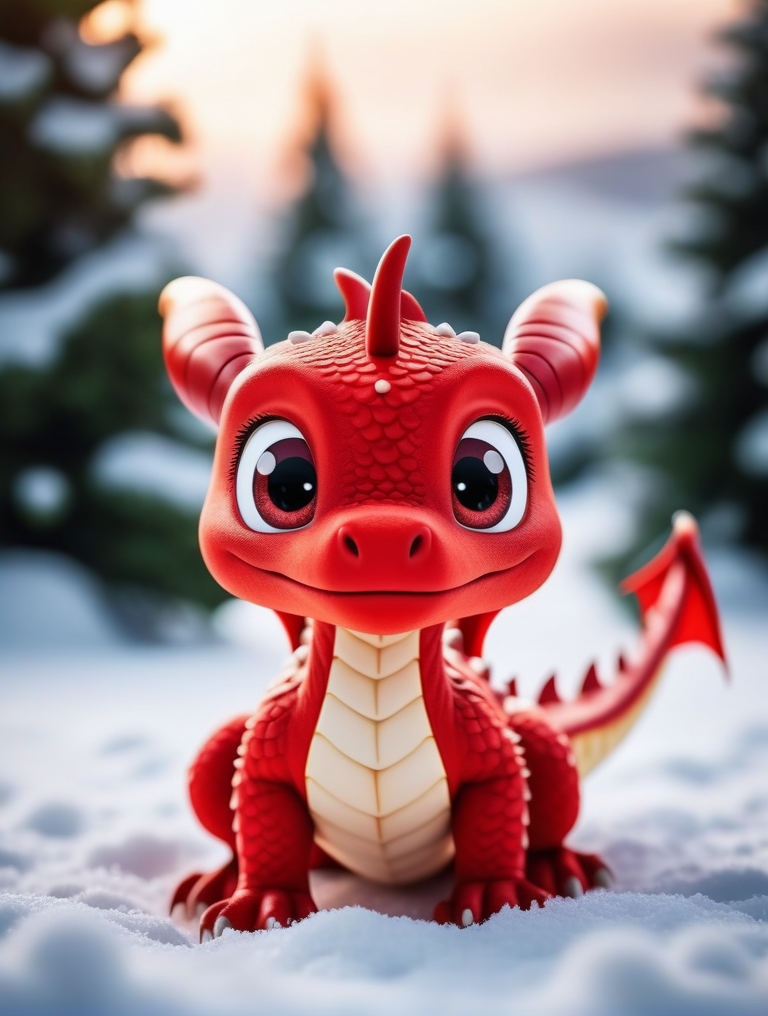 cinematic photo instant christmas,disney pixar style,cute adorable red dragon,outside in the snow, . 35mm photograph, film, bokeh, professional, 4k, highly detailed