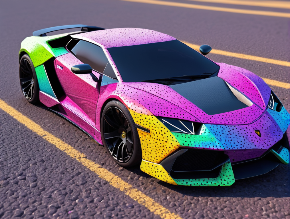 Pointillism style Geforce RTX 3060 . Composed entirely of small, distinct dots of color, vibrant, highly detailed,hyper vision car, sport, lamborgini style, <lora:SDXLPaintSplash:0.8> Colorsplash