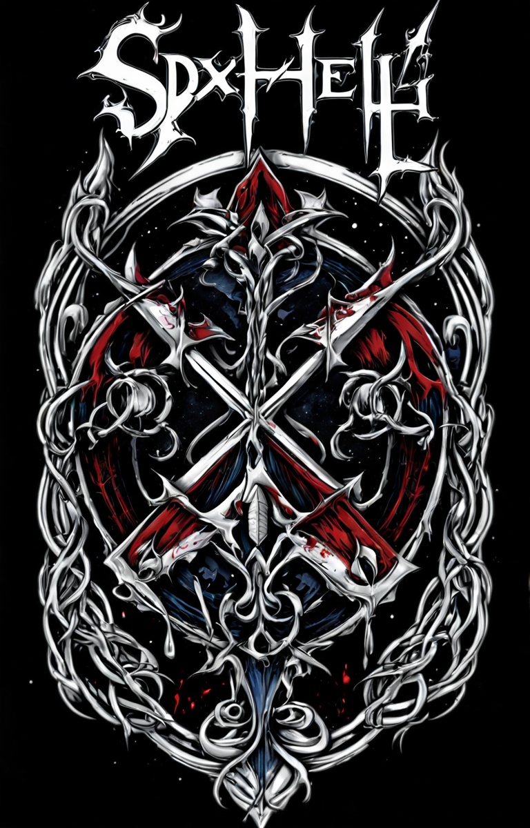 ("S D X H E L L" tshirt of the band "S D X H E L L":2), heavy metal tshirt, flying V guitar, band logo, T shirt design, TshirtDesignAF, <lora:TShirtDesignRedmondV2-Tshirtdesign-TshirtDesignAF:1>