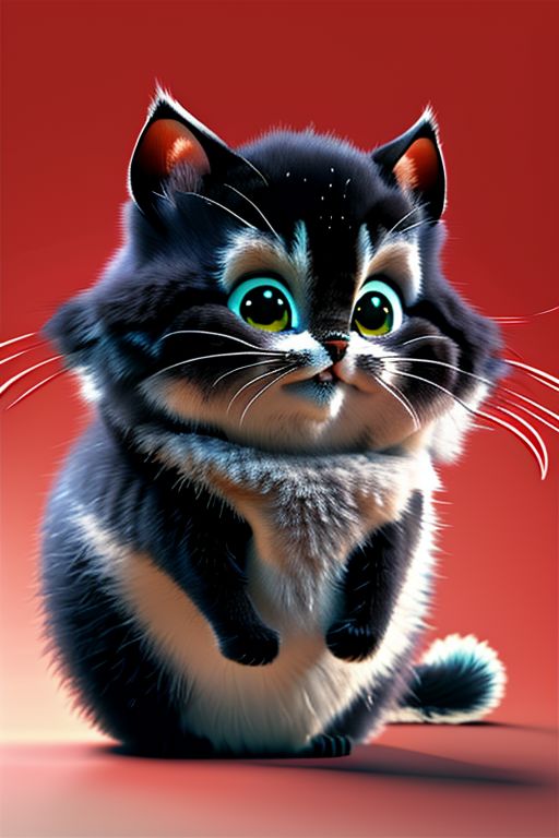 j_hairy, masterpiece, high quality, round animal, cute cat, red background,