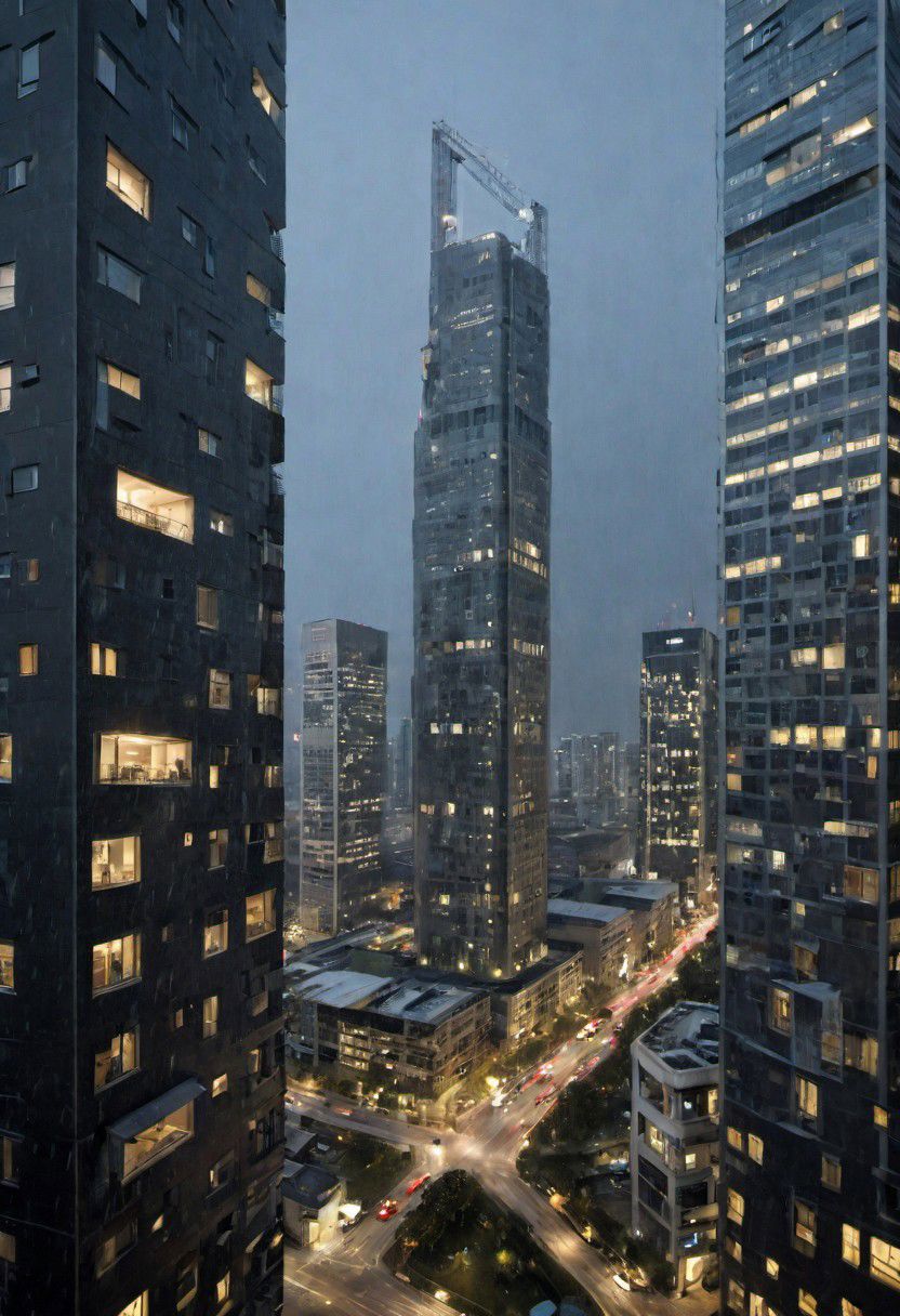 (POV, DOF, modern design, skyscraper, surrounded by high-rise buildings:1.4), (amazing, mystery, Spectacular, Luxurious, elegance, perfect design:1.3), (large file, super realistic, perfect, photograpy, construction sales photograpy, Interior design, super high resolution, cinematic photography, masterpiece:1.2), (direct sunlight, dramatic lighting, ray tracing, clear shadow, light pollution:1.2), (a narrow street with passerby), (heavr rain, ultra detail raindrop:1.3), (white and black color tints, harmonious color:1.2), (modern|fesgan|sci-fi|future|Organicism_style:0.8), [skyscraper|building|viaduct|future city|MRT|park|neon sign_urban landscape::0.8], [(urban landscape|Tower crane|skyline|nature landscape:changeable cloud:0.4):0.8], [:(Door details, Window details, Railing details, Staircase details, Furniture details, Appliance details, Vehicle details, Leaf details, Stone texture, Wood texture, Marble texture, Cement texture, metal texture, glass texture:0.4):0.85], (blurred background:1.4), [(background, more_details:0.3), (more_details:0.6), (more_details:0.8), (more_details:1.2):0.65], aw0k illuminate, vertical,<lora:EMS-59651-EMS:0.800000>,<lora:EMS-259973-EMS:1.200000>