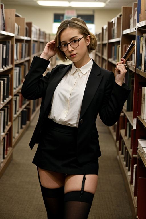 score_9, score_8_up, score_7_up, score_6_up, score_5_up, score_4_up, 1 girl, blonde hair, short hair, updo hair, black business suit, round eyewear, glasses, library, green eyes, black skirt, zettai ryouik, solo, hand behind head <lora:sdxl\Concept Art Twilight Style SDXL_LoRA_Pony Diffusion V6 XL:0.8>, concept art, realistic, <lora:sdxl\Expressive_H-000001:0.8>, expressiveH <lora:sdxl\pony_OldAnimeStyle_XL_v3:0.4>, 1990s \(style\), vintage <lora:sdxl\sinfully_stylish_SDXL>