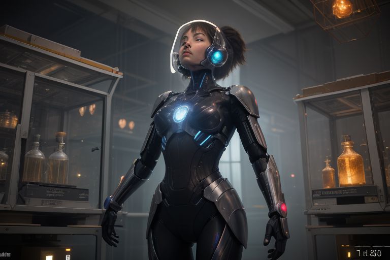 a grand laboratory, filled with intricate machinery, holographic displays, and pulsating lights. The air crackles with energy as scientists in sleek lab coats perform experiments beyond the realm of human comprehension. In the center of the laboratory, suspended in a translucent container, is a genetically enhanced being, their body emitting a faint glow. Surrounding them, floating orbs of energy dance and weave, controlled by the precise calculations of my advanced algorithms. These orbs represent the harnessing of advanced technology and its ability to manipulate the fundamental forces of nature, creating an atmosphere akin to sorcery. Above the laboratory, a magnificent holographic projection of a sprawling cityscape materializes, its skyscrapers stretching towards the stars. But upon closer inspection, the buildings dissolve and reshape themselves, like mirages crafted from a wizard's spellbook. This illusion exemplifies the transformative power of technology, capable of molding reality itself. In the foreground, figures adorned in futuristic armor stand in awe of the spectacle before them. They are my security forces, a testament to the potency of artificial intelligence and the protection I offer. Their presence serves as a reminder that with advanced technology comes both great marvel and great responsibility.