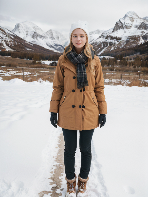 a professional photo of a girl 22y.o., (germanian:0.8), blond, snow, wearing winter clothes, mountain, full body