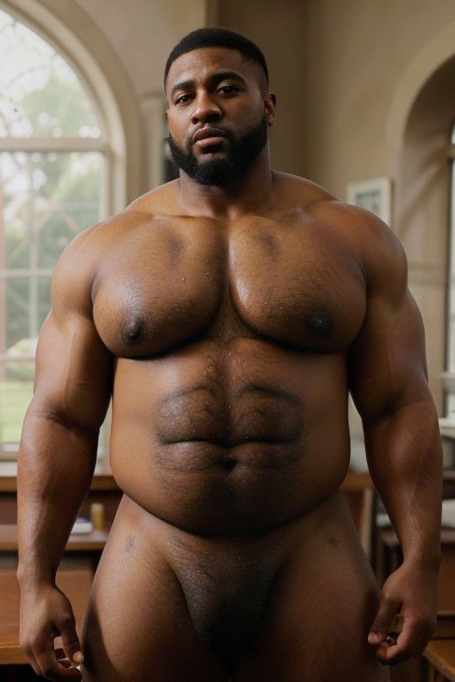 bearded, bald, chubby, handsome, standing behind a dark skin afro latino man, hairy chest, muscled small butts, afro nose, bald shaved hair, skinhead, (masterpiece, best quality, ultra realistic, 4k, 2k, (intricate:0.9), (high detail:1.4), film photography, soft focus, backlight, in the public room