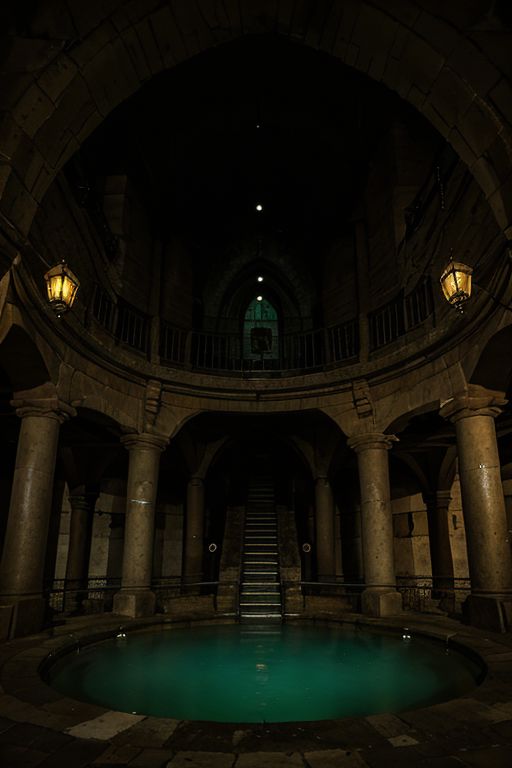 sewers giant dungeon room in the underground, a skeleton is in rage, water basins, stairs into the green wastewater, photorealistic HDR Canon EOS 5D, intricate, hyper-realistic