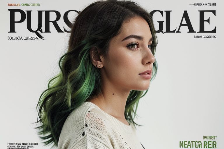 high-resolution pen-and-ink drawing magazine cover of a female face, in three-quarters profile, a tan european woman with hooked nose, dirty green hair, green eyes, dark eyebrows, square face, plain bright white background, flat bright lighting, Wearing a black sweater.