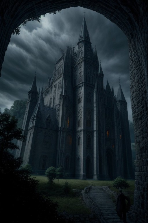 Create a description of a Gothic-style castle with an airy view, emphasizing its mysterious nature.
