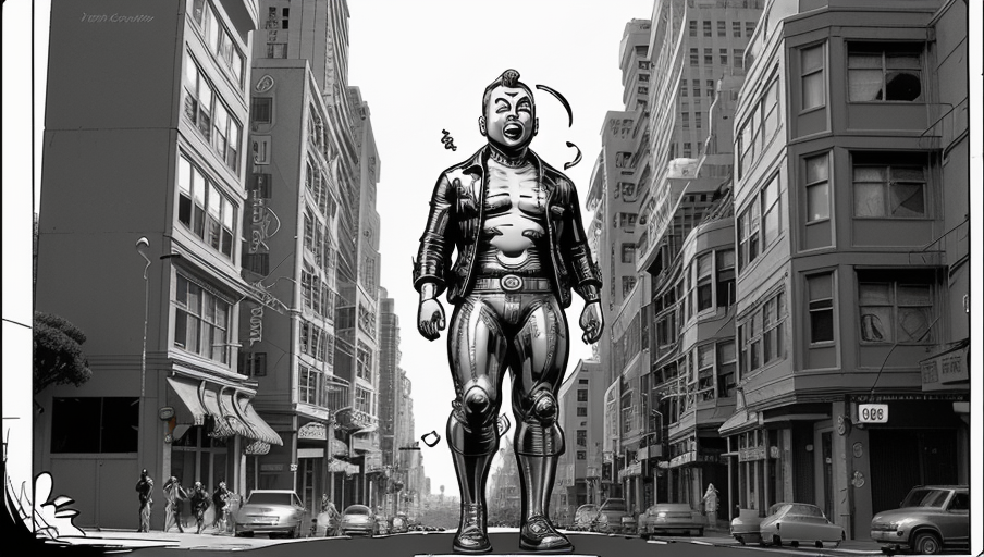 chaotic stunning San Francisco, (style of tin tin comics), pen and ink,retro-futuristic