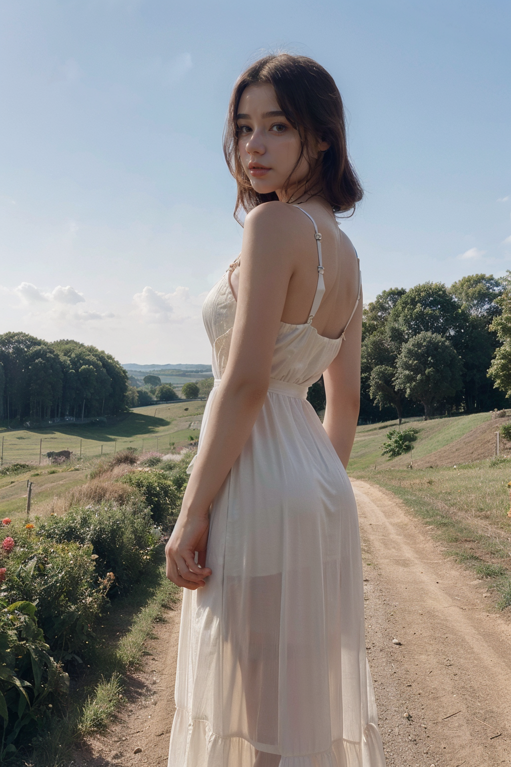 <lora:dashataran:0.9>dashataran, a woman wearing maxi dress, countryside, (god rays:0.5)