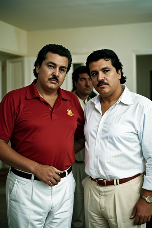 donald trump takes a photo with pablo escobar very detailed, professional photography, sharp focus