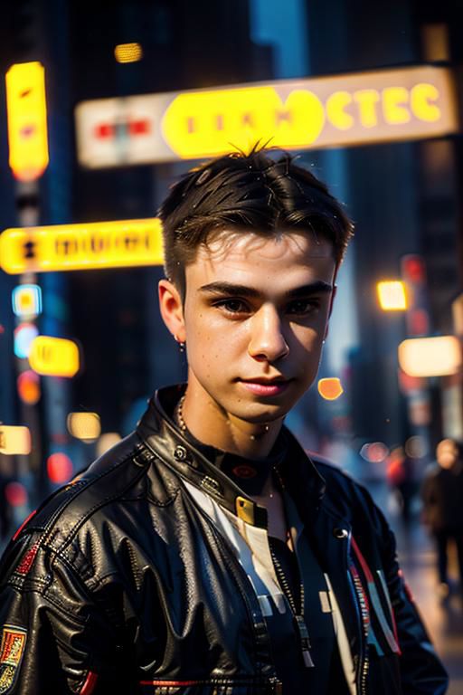 Young man, hypercar, cyberpunk city, hyperdetailed, intricately detailed, deep color, 8k resolution, photorealistic, masterpiece, cinematic lighting
