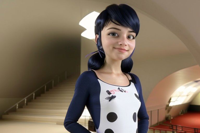 RAW selfie amateur downblouse photo of pretty, white, 24yo woman, neck tattoo, <Marinette Dupain-Cheng Ladybug:0.6> , 1girl dark blue hair, dark eyebrows, wearing ladybug outfit, ladybug costume, <poolrooms:1>, smirk, hands on hips pose, high quality, film grain, <lora:more_details:.4>, Poolrooms, src_poolrooms