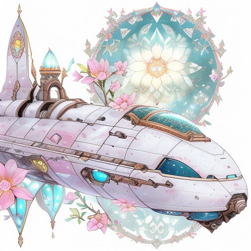 Clear white background, flowers, intricate design, ArsMJStyle, Art Noveau, (Spaceship),