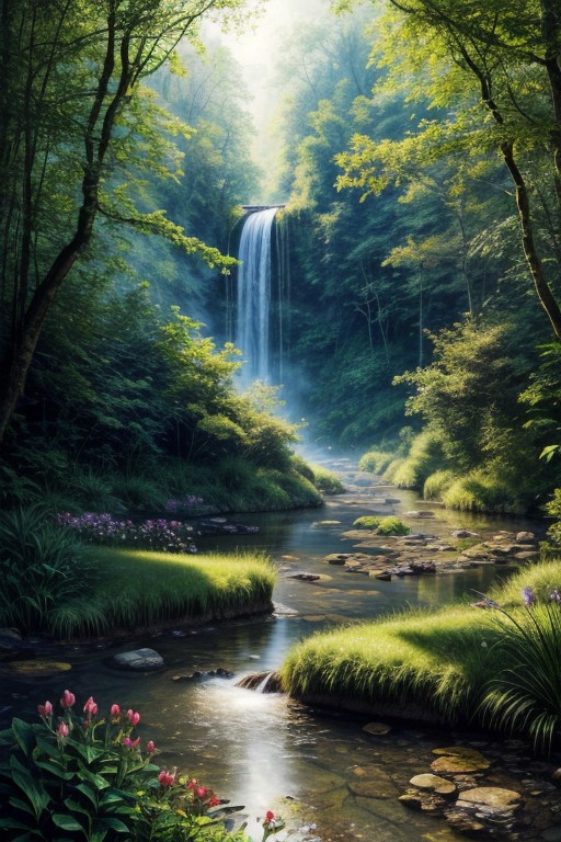 masterpiece, best quality, absurdres, illustration, photorealistic, cinematic, dynamic, domain expansion, glowing flowers, floating petals, lush greenery, sparkling streams, mystical light, enchanted flora