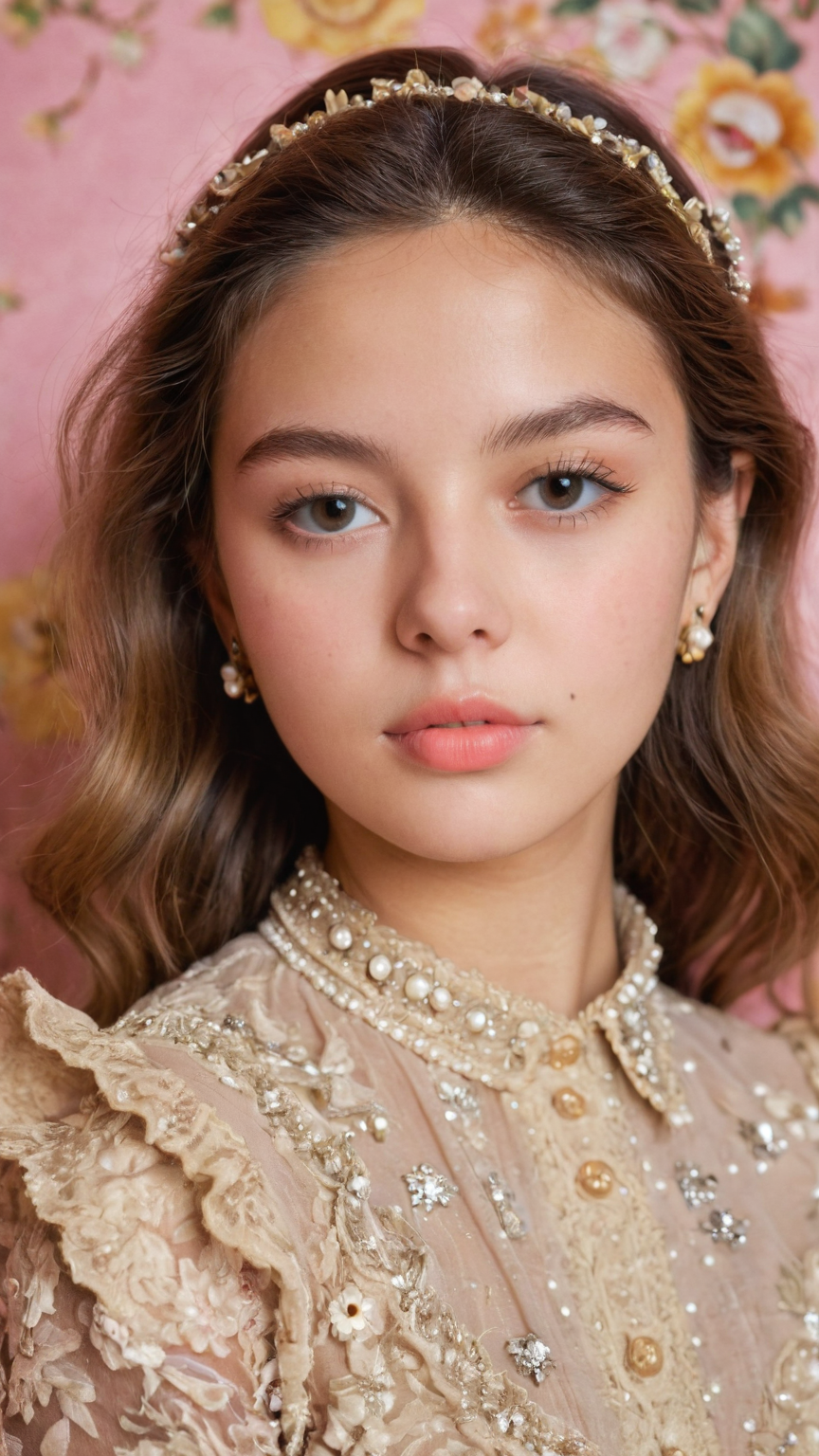 detailed portrait Photo of a beautiful 20yo woman who is an instgram influencer, detailed rich background by Cecil Beaton