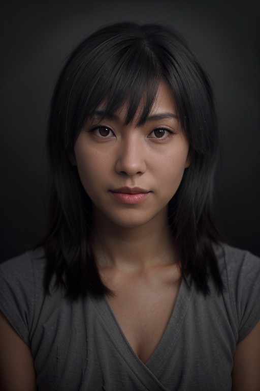 DEN_anri_okita, ((headshot:1.2) portrait on a (plain dark grey background:1.2), (headshot:1.2), (face focus:1.1), (soft focus:1.2), low lighting, (out of focus:1.2):1.2), bokeh, f1.4, 40mm, photorealistic, raw, 8k, textured skin, skin pores, intricate details <lora:epi_noiseoffset2:1>, epiCRealism