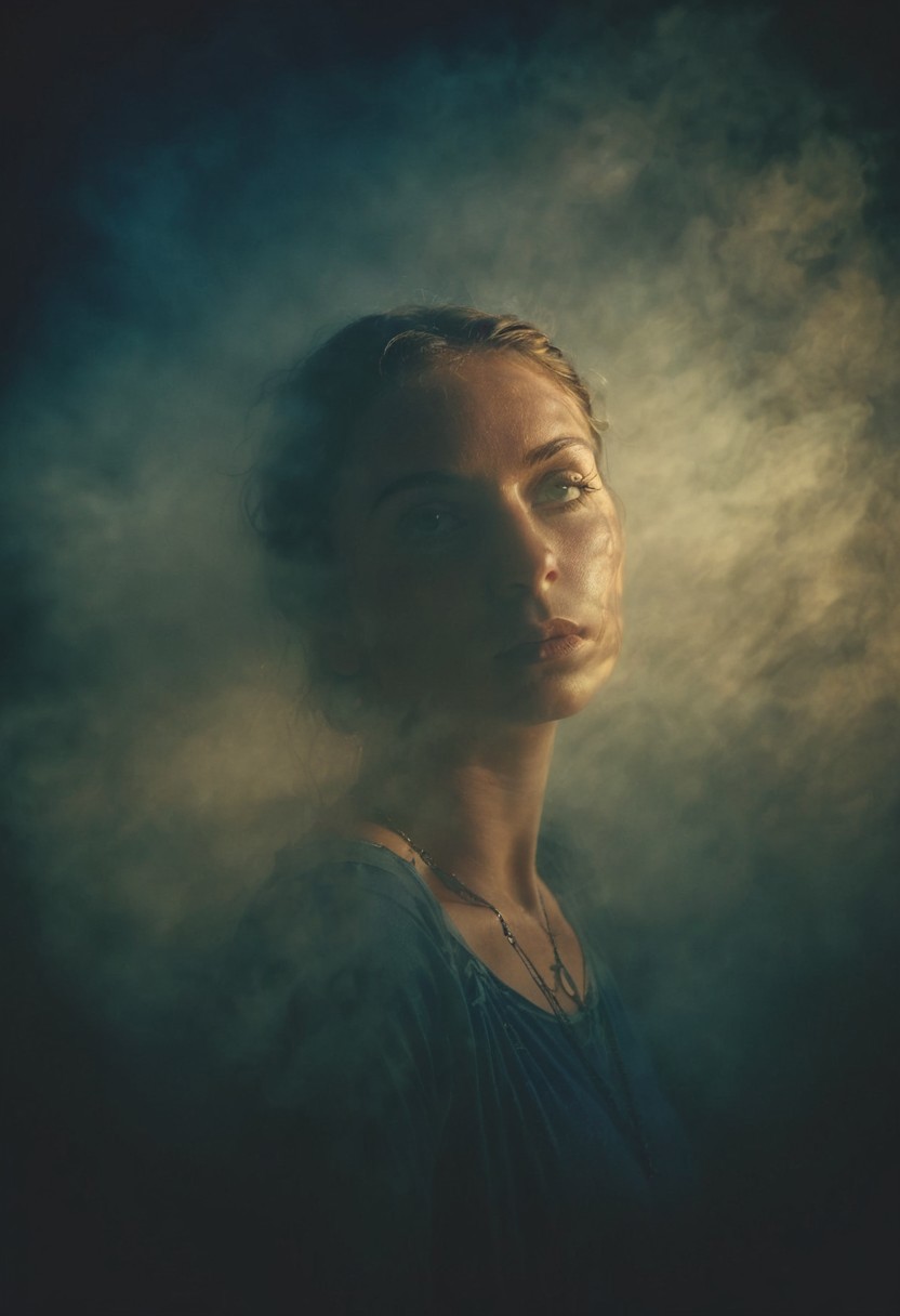 layered papercut, (a sad woman,style by Ando Fuchs,Bloom Effect,Large Format Photography,Soft Illumination,Hasselblad X1D II Digital,vignetting,dark shot,(vivid colors:0.1),(center composition, symmetry composition:0.1),<lora:MJ52:0.2>,)(analog photo:1.2)mysterious face, an exotic woman in artsy clothing, fading backlit background,(Underexposed Photography by Helene Schmitz and William George Wadman:1.2), award winning, hantu air, (aesthetic of video game art with tangled atmosphere:0.5), crepuscular rays, crystalline clarity, bold extraordinary work with unrivaled details, (dark gray and bluish-red colors:0.1), <lora:MJ52:0.7>, (foggy:1.4), (bathed in thick fog:1.4), (half-obscured:1.3), (Close up:1.2), Dutch Angle), (dynamic composition:1.2), (shallow depth of field:1.2), bright lighting vibrant, in the style of (Ansel Adams:1.3) (Rule of thirds:1.1) Show less