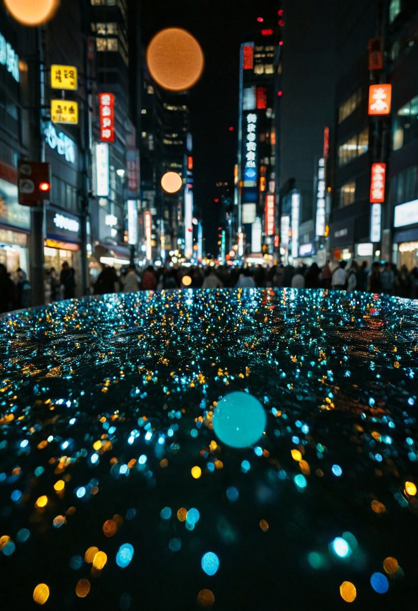 Anamorphic Bokeh, these photographs were created by distorting and inverting crowd scenes through circular lenses. The frame of the lens becomes a dominant compositional element, containing blurred and abstracted figures that are reduced to smears of unidentifiable colour. high-rise buildings and photographs Tokyo city at night, capturing radiant semi-abstract urban landscapes. This composition contains a single focused area, surrounded by circular, glowing ‘bokeh’ – shimmering orbs that appear when a camera lens attempts to record unfocused points of light. Bokeh is created in different ways by different lenses – typically appearing unintentionally in the background of a scene. In this image, Kitajima has used a narrow depth of field (so the area in focus is very small). In addition to being an exciting part of outdoor night photography, bokeh can occur in dimly lit interiors, such as when photographing sequinned fabric, glitter sparkle or Christmas lights etc.