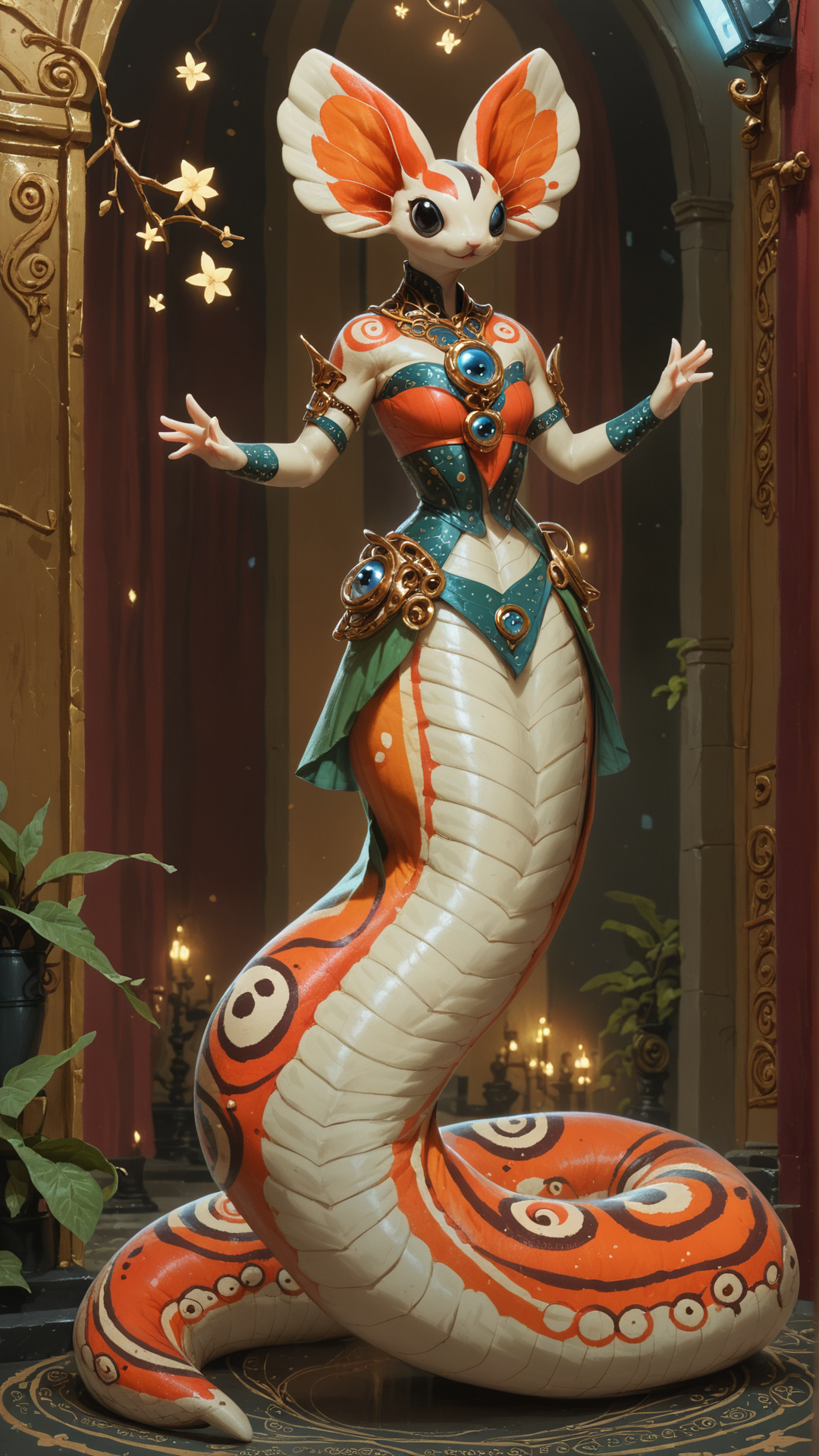 score_9, score_8_up, score_7_up, score_6_up, <lora:NagaPDXL:1>naga, full body, creature, titian cropped pixie in location: optical illusion room, environment